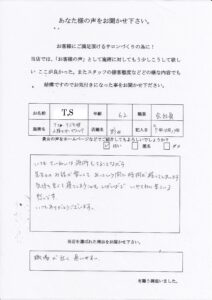 土曜日はお休み頂きましたので、火曜日にご来店頂きました